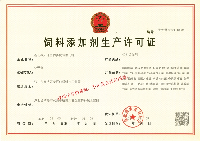 湖北綠天地生物科技有限公司 (簡(jiǎn)稱(chēng)綠天地公司)投資7000萬(wàn)元,擁有25000平方米的廠房和國(guó)內(nèi)先進(jìn)的設(shè)備360臺(tái)套,建有微生物發(fā)酵、發(fā)酵冷凍干燥、低溫造粒等8個(gè)車(chē)間,發(fā)酵罐總?cè)萘?50立方米,專(zhuān)業(yè)的飼用級(jí)益生菌發(fā)酵生產(chǎn)基地。 公司已通過(guò)IS09001:2015質(zhì)量管理體系認(rèn)證。 綠天地公司得到了華中農(nóng)業(yè)大學(xué)、中國(guó)農(nóng)...