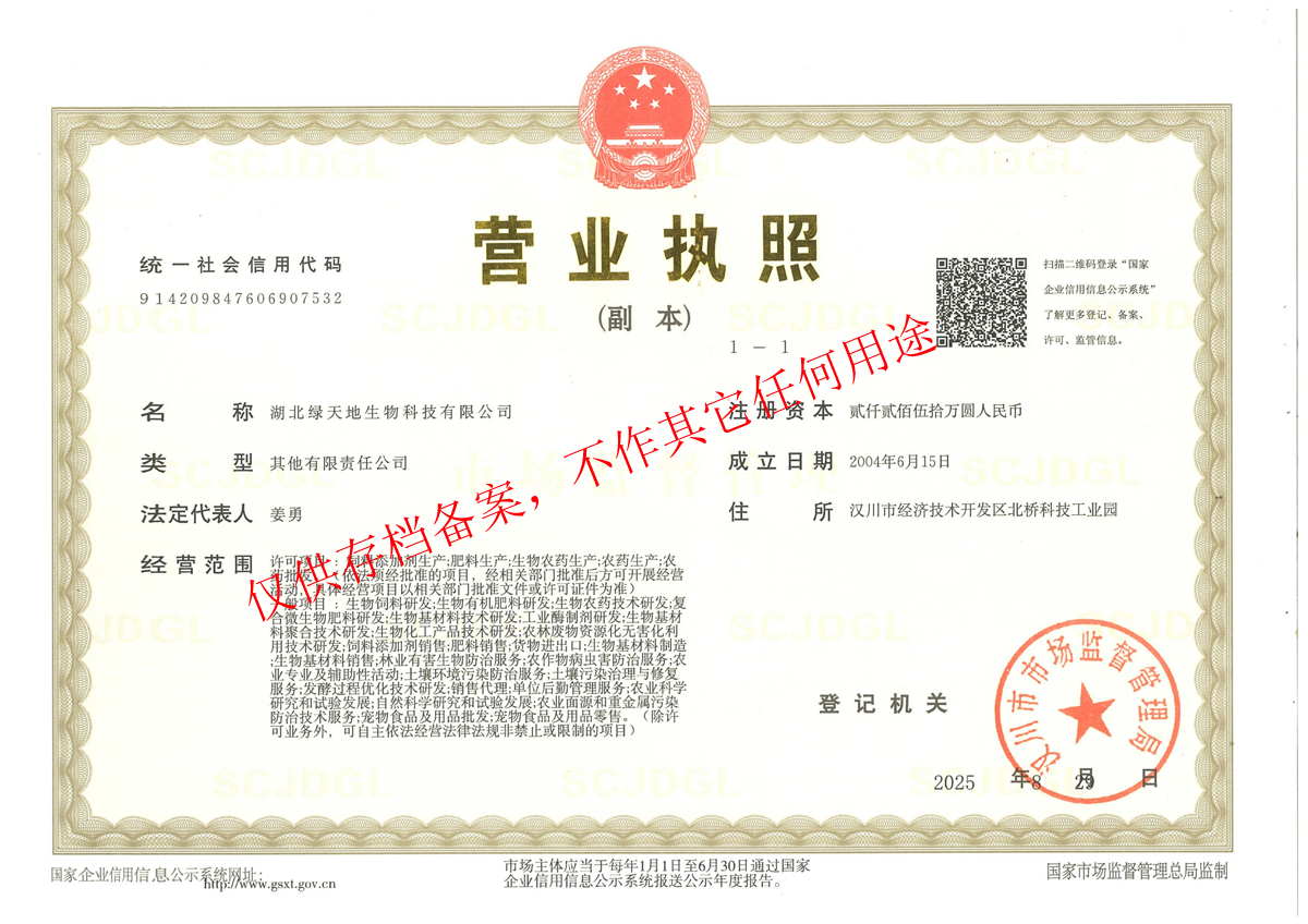 湖北綠天地生物科技有限公司版權(quán)所有@2009 備案號(hào):鄂ICP備20000286號(hào)-1 技術(shù)支持:jltech京倫科技